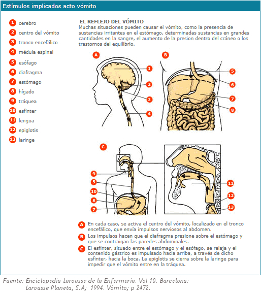 Vol 10. Barcelona: Larousse Planeta, S.A; 1994. Vómito:p. 2468-2475. - Hasler William L. Náuseas, vómitos e indigestión. En: Harrison Principios de Medicina Interna.